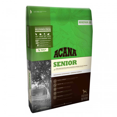 Alto en proteínas y baja en carbohidratos para ajustarse a la dieta natural, Acana Senior no tiene trigo, maíz ni gluten, presentando en su lugar frutas, verduras y avena partida. Carbohidratos hipoglucémicos que tienen pocos azúcares simples encontrados en otros cereales.