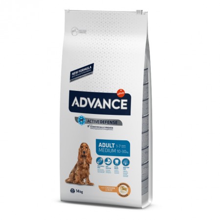 Alimento rico en pollo y arroz, especialmente indicado para perros adultos (de 1 a 7 años) de raza mediana (de 10 a 30 kg. de peso adulto)