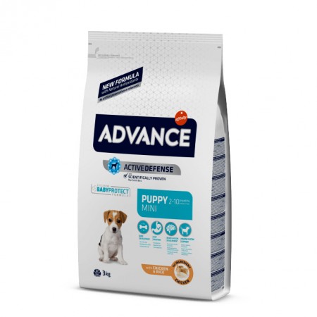 El Pienso Advance para perros Mini Puppy ayuda al crecimiento sano de nuestro cachorro, el desarrollo fuerte de sus huesos y estimula sus defensas digestívas.