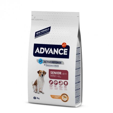 El pienso Advance Mini Senior +8 es un alimento de alta gama especialmente indicado para perros de raza pequeña (hasta 10 kg. de peso adulto) de más de 8 años
