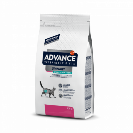 ADVANCE VETERINARY DIETS URINARY STERILIZED LOW CALORIE es un alimento dietético completo para gatos adultos esterilizados. Con energía moderada y rico en fibra para ayudar a controlar el peso en gatos esterilizados. Formulado con un nivel moderado de magnesio y propiedades acidificantes de la orina, indicado para reducir la reaparición de cálculos de estruvita en la orina de tu gato.