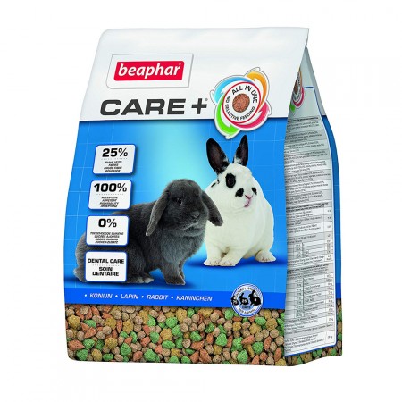 Beaphar Care+ Conejo es un alimento extrusionado super premium extremadamente sabroso y bien equilibrado para los conejos bajo en materia grasa y alto contenidos en fibras.