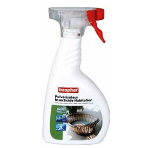 Pulverizador insecticida ambiental de Beaphar, ideal para mantener limpio el entorno de nuestra mascota (alfombras, moquetas, cestas, mantas ...) de pulgas, garrapatas, piojos, cucarachas, ácaros, arañas, hormigas ...