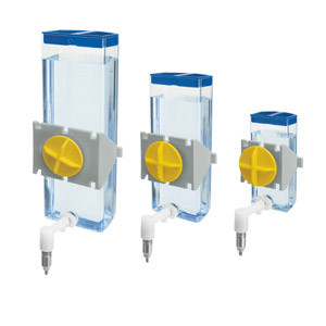 Bebedero para roedores apto para instalar en superficies lisas o en los barrotes de la jaula, gracias a que podemos engancharo a los barrotes mediante una rueda de sujección o mediante ventosas para roedores en jaula de cristal o acuarios.