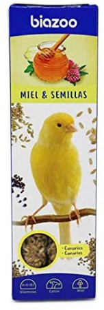 Las barritas Biozoo miel son un alimento complementario, sano y energético compuesto a base de semillas de alta calidad, especialmente indicado para canarios. Son además una golosina y un pasatiempo ideal ya que no es bueno que los pájaros de alimenten sin esfuerzo.