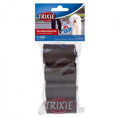 Recambio de bolsitas de basura para portarollos de la marca TRIXIE. Abre una bolsita y úsala como si fuera un guante. Recoge la basura, cierra la bolsita y tírala a la papelera.