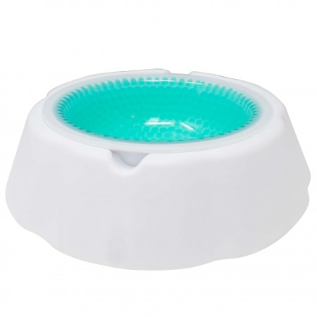 Permite mantener el agua fresca hasta 6 horas.Extraiga el cuenco de la base y colóquelo en el congelador un mínimo de 2 horas, vuelva a colocarlo en la base y llénelo con agua.