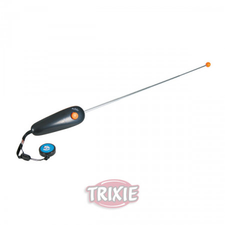 Clicker de adiestramiento retráctil con bola en la punta para premiar en el hocico. Incluye una cuerda de Nylon ajustable. Retráctil de 14 a 65 cm. Adecuado para perros, gatos, roedores y pájaros.
