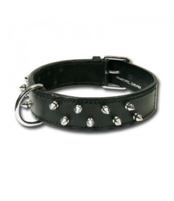 Un collar resistente con el cual tu perro siempre lucirá fuerte y atractivo. Tiene una doble hilera de pinchos de metal y un cómodo cierre de hebilla