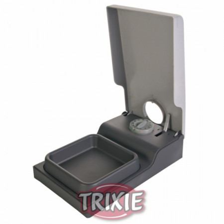 El temporizador asegura la apertura automática a la hora programada para una comida de 300 ml. Temporizador de 48 horas. Incluye un pack refrigerante para mantener el alimento fresco, colocándolo bajo el plato de la comida. Capacidad: 300 ml. Funciona a pilas