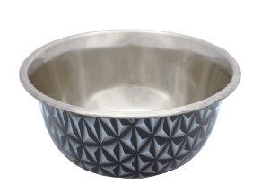 Comedero Inoxidable Antideslizante Gourmet es un comedero-bebedero de acero inoxidable en forma de bol, con un diseño de figuras geométricas en 3D muy llamativo y bonito.