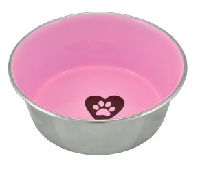 Comedero Rosa Inoxidable Antideslizante Love Paw es un comedero-bebedero para perro y gato de gran calidad. Está decorado con detalle en corazón rosa muy actual y bonito. Además la base de este comedero, de acero inoxidiable, es de caucho para evitar deslizamientos a la hora de comer o beber nuestra mascota.