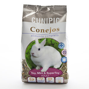 Alimento natural y equilibrado especialmente formulado para el conejo Toy, Mini y Supertoy. Mantiene la salud física y psíquica del conejo ofreciendo una amplia gama de colores, olores, texturas y materias primas que lo harán irresistible para su mascota. Su fórmula asegura la correcta función fisiológica del tracto digestivo.