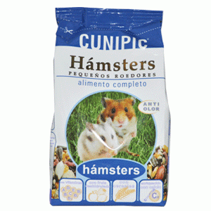Alimento completo con vitaminas, minerales y fibra desarrollado especialmente para la alimentación de todo tipo de hamsters y pequeños roedores. Con cereales, cacahuete, uva pasa, pipa y sorgo.