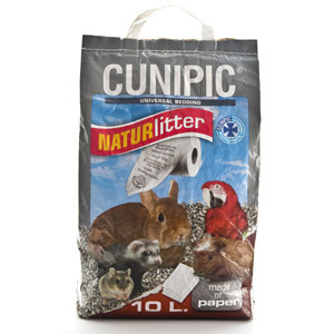 Cunipic Naturlitter papel es un lecho ecológico universal pensado para todo tipo de animales tales como conejos, cobayas, pequeños roedores, gatos, pájaros, hurones, perros, etc. compuesto de papel reciclado prensado en forma de pelet y libre de polvo, algo importante para no generar posibles alergias en sus animales. Su tamaño es pequeño y ligero, por lo que el lecho se compacta y simula el lecho natural del animal.