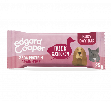 Nuestras barritas energéticas son muy sencillas. Esta receta sin cereales está hecha con la mejor carne de pato y pollo, maravillosamente combinadas con brócoli, guisantes y zanahorias. Eso significa que no solo son absolutamente deliciosos, sino que también son una fuente increíble de proteínas, vitaminas y minerales ricos en energía. Horneamos suavemente todas nuestros premios y los envasamos cuidadosamente en bolsas 100% biodegradables