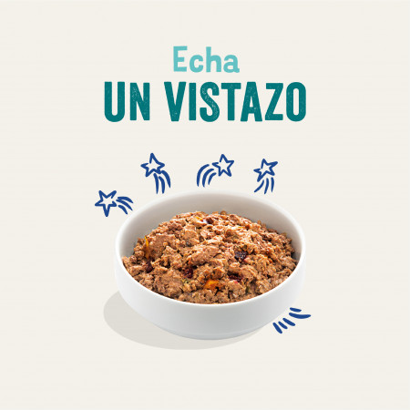 Esta sencilla receta aúna todo lo bueno del sabor y los beneficios del salmón y la trucha más una deliciosa y sana mezcla de frutas y hortalizas. Nunca utilizamos harinas de pescado ni ingredientes deshidratados ni procesados, por lo que nuestra comida es más fácil de digerir. Es una receta sin cereales y añadimos prebióticos para favorecer una digestión aún más sana. Cocinamos nuestra comida húmeda a fuego lento para conservar sus propiedades y sabor naturales.