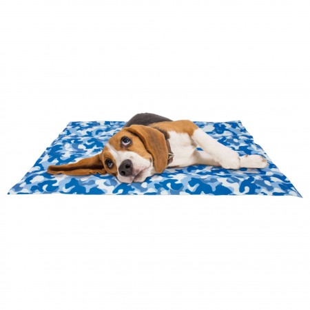 Esterilla refrescante para mascotas sin refrigeración previa ni electricidad. El gel que contiene genera una condición térmica más baja respecto a la del perro, refrescándolo y regulando su temperatura corporal.