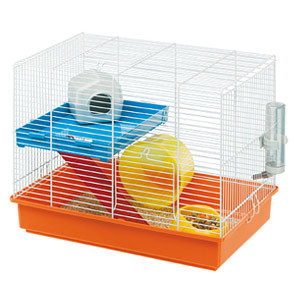 Jaula para hamsters con 2 pisos con comedero, bebedero, rueda de ejercicios y caseta
