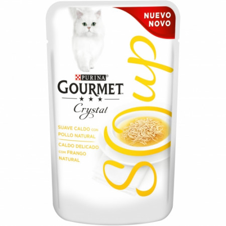 Gourmet Crystal es una gama de recetas elaboradas con una gran cantidad de los ingredientes más selectos de la naturaleza, como piezas de pollo reales y reconocibles o marisco, ingredientes con los que realmente te puedes sentir a gusto.