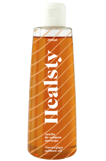 Healsty es un aceite de salmón fresco, procesado en frío, procedente de Noruega, rico en Astaxantina y con un aporte extra de ácidos grasos omega·, especialmente DHA (14%) y EPA(12%).