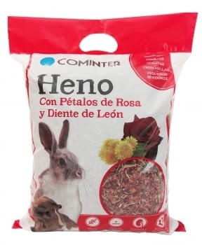 El heno con Pétalos de Rosa y Diente de León, combina las propiedades de este forraje natural, aportando fibra con un bajo contenido calórico, junto con los beneficios de estos aromáticos que poseen un efecto depurativo y además aportan vitaminas para una buena salud.