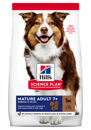 Pienso Hill\'s con cordero y arroz a partir de los 5 años (razas grandes) o los 7 años (razas pequeñas)