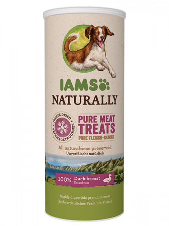 Las golosinas IAMS Naturally de pura carne están cuidadosamente liofilizadas para preservar los nutrientes importantes y el sabor para el disfrute de su perro. Nuestras golosinas están elaboradas con ingredientes naturales; las golosinas 100% de pato no solo son sabrosas, sino que contienen proteínas de alta calidad y son altamente digestibles.