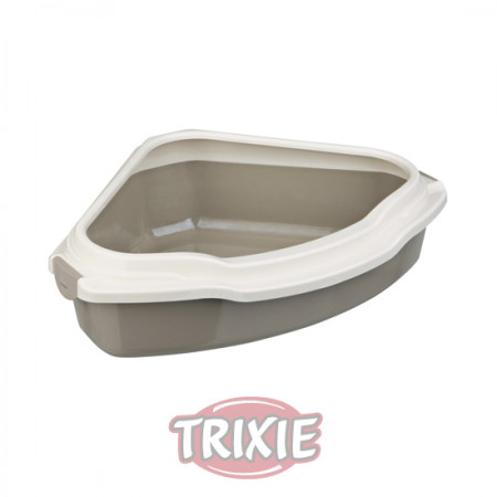 Bandeja higiénica para gatos. Con forma de esquina para aprovechar mejor los huecos en estancias pequeñas.