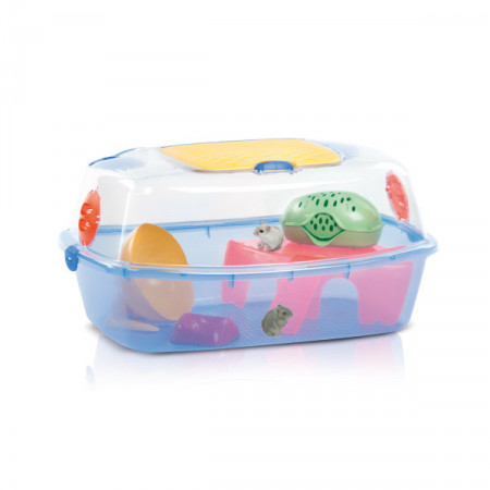 Jaula para hamsters y ratones. Incluye todo lo necesario para su mascota como comedero, bebedero, ruedas de ejercicio, caseta, etc...