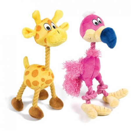 Los peluches Jirafa y Buitre con cuerda son dos divertidos juguetes que harán que tu perro se divierta cada día.