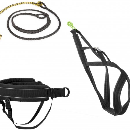 Este conjunto incorpora el material necesario para la práctica de este deporte, tanto a nivel recreacional como en competición. También se puede usar para la práctica del canihiking (senderismo con perro) pues permite llevar las manos libres y la línea elástica amortigua la sujeción entre ambos. Este kit permite la práctica del canicross a nivel recreacional aunque se recomienda añadir un suplemento a la línea de tiro para alargarla. El kit incluye: - Cinturón ligero y acolchado, con costuras reforzadas, y regulable en cintura desde 82cm hasta 155cm. - Línea de canicross para un perro, fabricada en polietileno de 8mm con amortiguador de látex ingerido que permite su extensión para evitar movimientos bruscos entre perro y corredor. Incluye un mosquetón ligero en cada extremo - Arnés tipo X-BACK extremadamente ligero, elaborado con material resistente, hipoalergénico y no abrasivo. Las zonas donde el perro nota una mayor resistencia al tiro (esternón y alrededor del cuello) están especialmente acolchadas