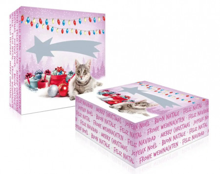 Caja regalo de Navidad que contiene 1 juguete para gato, 2 latitas de comida, 1 comedero y un paquete de hierba para gatos de 100 gr.