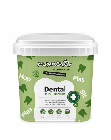Alimento complementario natural para perros de tamaño mediano o pequeño en forma de barrita especialmente elaborada para favorecer un buen estado de higiene dental.