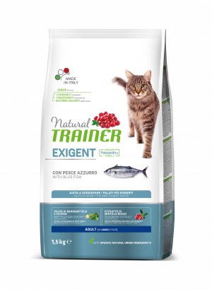 Natural Trainer Exigent Cat elaborado con pescado del océano e ingredientes funcionales como la menta, la manzana o el extracto de arándanos, es un delicioso alimento ideal para cuidar la salud de los gatos con gustos particularmente exigentes.