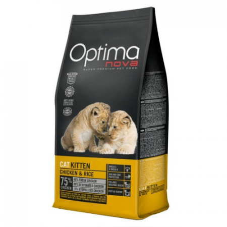 Optimanova Cat Kitten Chicken & Rice está especialmente formulado para aportar la máxima nutrición tanto durante los primeros meses de vida, como en los periodos de lactancia. Protege el sistema inmunológico y estimula el desarrollo óptimo, evitando posibles trastornos cardiacos y problemas digestivos.
