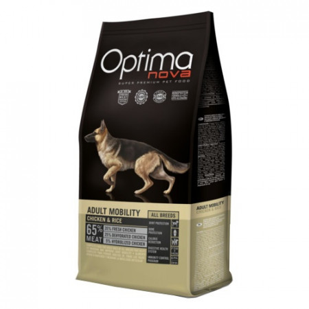 Optimanova Adult Mobility Chicken & Rice contiene ácidos grasos omega-3 EPA y DHA, presentes en los aceites naturales de pescado, que se asimilan fácilmente y ayudan a mantener unas articulaciones sanas al reducir el deterioro de los cartílagos. En ocasiones los problemas articulares van asociados al sobrepeso, ésta fórmula especial, incluye L-Carnitina, que acelera la quema de grasas y ayuda a mantener en perfecto estado la musculatura.