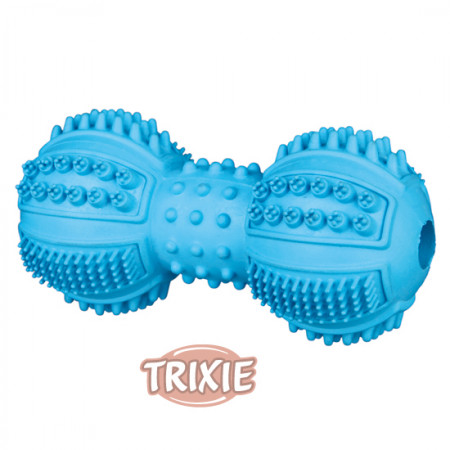 Mordedor para perros con forma de pesita fabricado en caucho. Por su tamaño reducido es perfecto para perros pequeños. Colores surtidos.