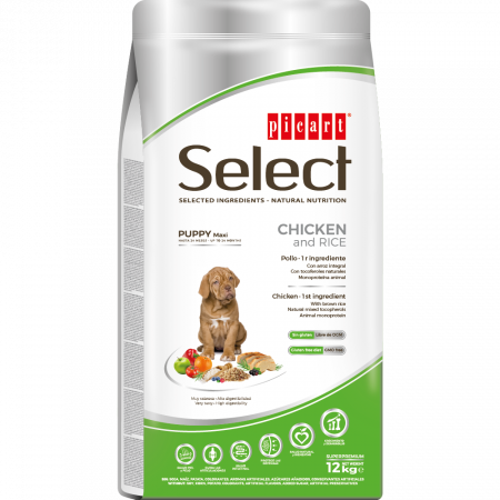 Picart Select PUPPY MAXI con pollo y arroz está formulado para satisfacer todas las necesidades de tu cachorro y promover una condición física y salud óptimas.