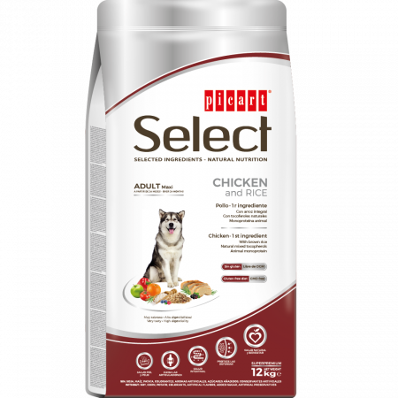 Picart Select ADULT MAXI con pollo y arroz está formulado para satisfacer todas las necesidades de tu perro y promover una condición física y salud óptimas.