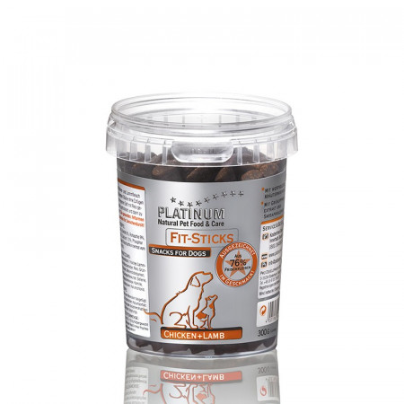 Al igual que Platinum alimentos completos, los snacks de Platinum contienen sólo ingredientes naturales y de alta calidad. Estan elaborados con un 76% de carne fresca de pollo y cordero. Platinum Fit-Sticks son jugosos y deliciosos. Su perro los amará.