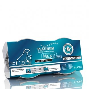 Alimento completo húmedo para perros adultos elaborado con pollo y pescado fresco.