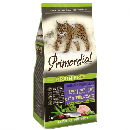 Alimento completo sin cereales, fácil de digerir, rico en proteínas de alto valor biológico y con un perfil apropiado de aminoácidos. El pavo, estrictamente criados en tierra (no en gavias) tiene una carne muy apetecible y sabrosa con una proteína de fácil digestión para los gatos, el arenque tiene una proteína noble y es una buena fuente de ácidos grasos Omega 3, que desempeñan un importante efecto cosmético sobre la piel y el pelaje y beneficioso para el sistema cardiovascular (corazón y arterias). Las frutas y verduras ricas en vitaminas, minerales y fito-nutrientes. La Lespedeza con propiedades beneficiosas para el tracto urinario, arándanos con acción antioxidante, hacen de esta comida un equilibrio de sabor y nutrientes, un verdadero producto integral, lo que ayuda a llevar la acción saludable en todo el cuerpo del gato.