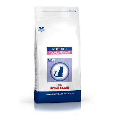Royal Canin Feline Neutered Young Female es un alimento especialmente pensado para la alimentación cotidiana de gatas hembras que han sido esterilizadas. Este pienso cuida la salud de los gatas castradas y cumple con sus necesidades nutricionales, aportando proteínas, vitaminas y minerales, que necesita tu mascota para mantener fuerte su salud.