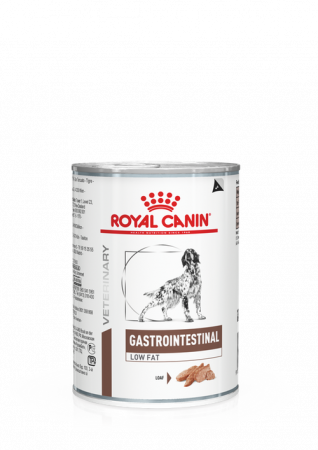 Royal Canin Gastro Intestinal Low Fat Húmedo es un alimento que cuenta con los niveles más bajos de grasas y fibras, por lo que está especialmente indicado para perros con cuadros clínicos de pancreatitis aguda o crónica y otros varios problemas digestivos. Este producto es adecuado también en diarreas agudas o crónicas, hiperlipidemia, linfangiectasia, enteropatía exudativa, sobrecrecimiento bacteriano e insuficiencia pancreática exocrina.