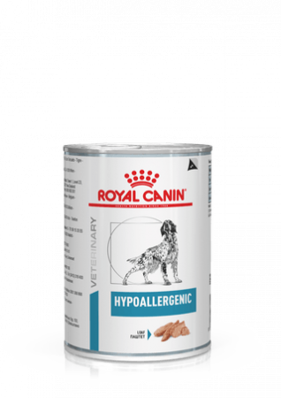 Royal Canin Hypoallergenic Canine Húmedo es un alimento dietético hipoalergénico, formulado para reducir la intolerancia a ingredientes y nutrientes, para la alimentación de perros que sufren trastornos alérgicos digestivos o dérmicos. Está indicado para dieta de eliminación, alergias alimentarias con signos dermatológicos y/o gastrointestinales, intolerancia alimentaria, enfermedad inflamatoria intestinal, insuficiencia pancreática exocrina, diarrea crónica y sobrecrecimiento bacteriano.