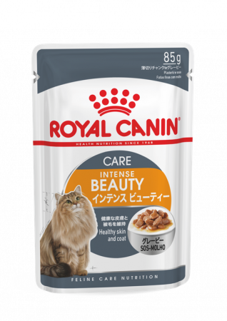 La piel y el pelo son un fiel reflejo de la salud de un animal. Royal Canin Intense Beauty Felino en salsa es un alimento en forma de deliciosos trocitos, formulados especialmente para gatos adultos desde los 12 meses de edad con piel y pelo sensibles. Gracias a los nutrientes específicamente adaptados, observarás rápidamente el cambio en el pelaje de tu mascota.
