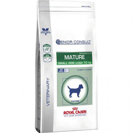 Royal Canin Senior Consult Mature Small Dog es un alimento indicado para perros mayores (a partir de los 8 años) de razas pequeñas (menos de 10 kg), que atiende las necesidades especiales de animales con sensibilidad digestiva o tendencia a la formación de sarro dental combatiendo el envejecimiento celular y preservando su salud cerebral y renal.