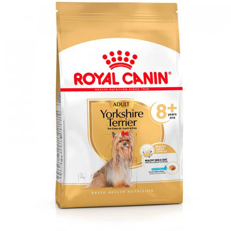 Alimento completo royal Canin Yorkshire Terrier Comida 8+, a partir de los 8 años se considera que los yorkshires inician la etapa de vejez (Etapa Senior).