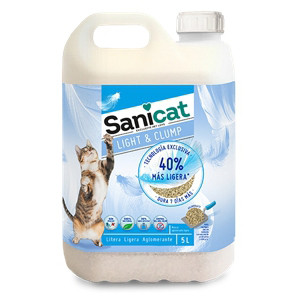 La arena aglomerante Light & Clump de Sanicat dura 7 días más que las bentonitas convencionales y es un 40 % más ligera. Se compone de una arcilla 100 % natural y no contiene polvo por lo que gusta tanto a los gatos como a sus dueños.